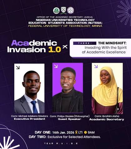 ‎The Nigerian Universities Technology Education Students Association (NUTESA), FUTMINNA Chapter, has organized a symposium with the theme – “The Mindset: Invading with the Spirit of Excellence” at Bosso Campus, Minna.